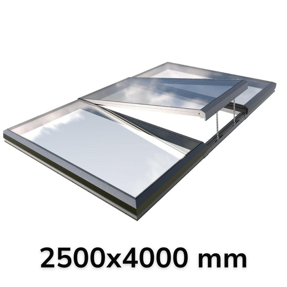 250 x 400 cm Modulaire daklicht met elektrische opening (2 vaste 1 opening)