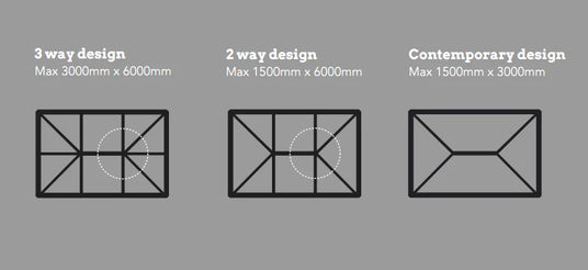 Stratus aluminium lichtstraten zijn verkrijgbaar in een 2-weg, 3-weg of modern design, met afmetingen tot 3 x 6 m. Hierdoor zijn ze ideaal voor elk interieur dat veel licht nodig heeft.