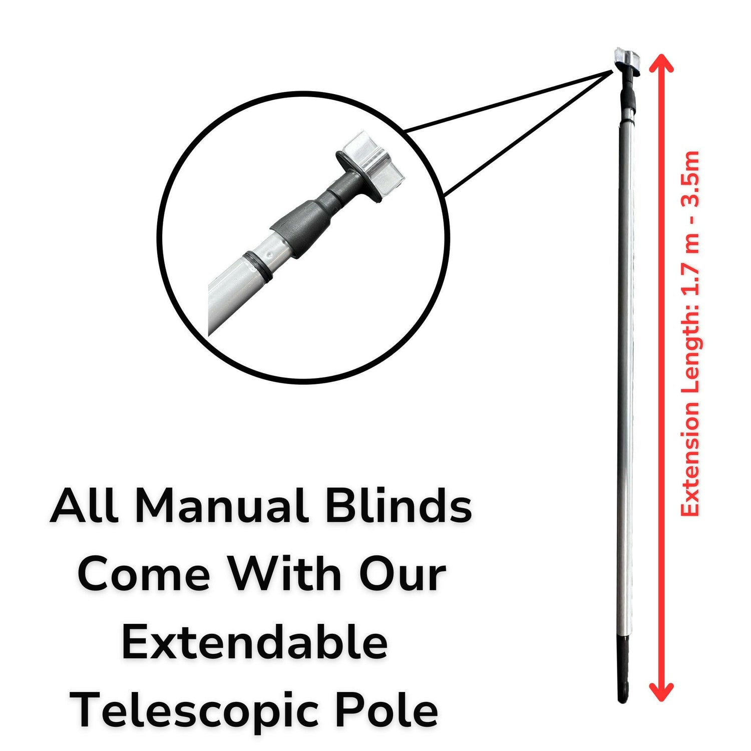 • Inclusief verlengstok – Wordt geleverd met een verlengstok voor moeiteloze bediening op moeilijk bereikbare plaatsen, wat zorgt voor gemak en gebruiksgemak.
