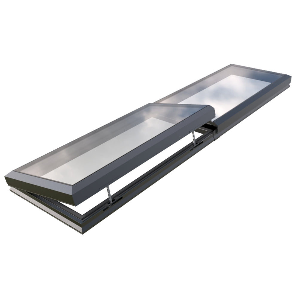 Puits de lumière modulaire à ouverture électrique 1000 x 4500 mm (1 fixe, 1 ouvrant)