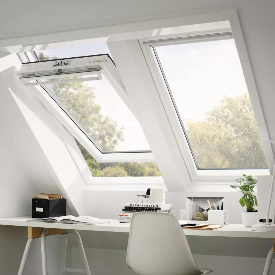 Fenêtre de toit à pivot central manuelle VELUX GGU UK08 0370 134x140 cm | Polyuréthane blanc sans entretien | Double vitrage