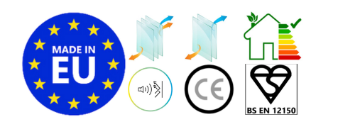 VEILIGHEID EN ISOLATIE: Gemaakt van 6 mm gehard veiligheidsglas, met een U-waarde van 1,2 w/m² en gevuld met Argon Gas voor superieure isolatie. Voldoet aan BSEN1279-normen.